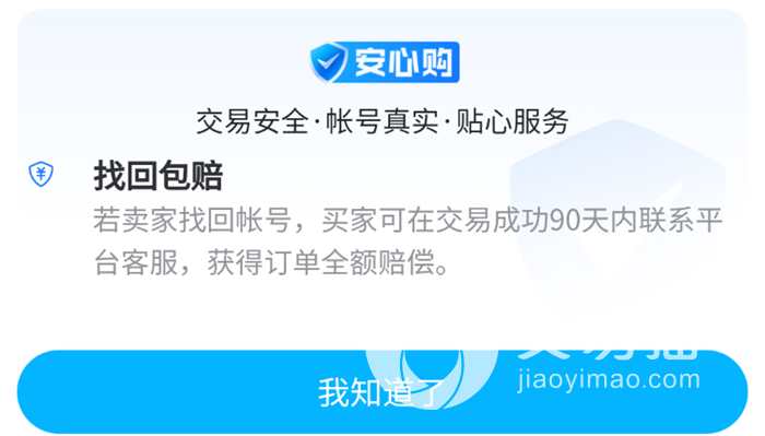 另外买卖行为本身的安全性能也是可以保障到的,比如说如果我们为账号开通了找回包赔的功能,那么买家一看,这个账号带有赔付的机制,就算被找回了也能够获得到补偿,这波不亏。特别是对于一些想要在近期浅尝辄止的小伙伴们来说就很实用了。