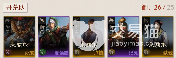 阵容一:孙策+夏侯霸+卢植+纪灵+蔡琰。