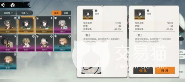 装备:想要提升战力的话,大家可以在游戏中多获取一些装备装备,它主要有两个类型,一个是阳刻,还有一个是阴刻,那个角色上阵之前都可以各携带一个来提升角色强度。
