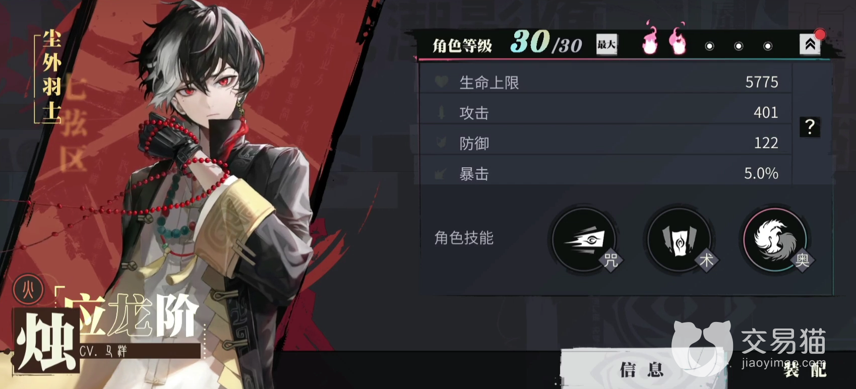 烛,这名角色以火焰符咒为主要的攻击手段,且符咒与符咒之间可以叠加释放爆炸性输出。且主动小技能方面拥有着不错的护盾,且操作性能较为优异。护盾方面可以直接抵消一次高额伤害,提高玩家们操作的容错率。